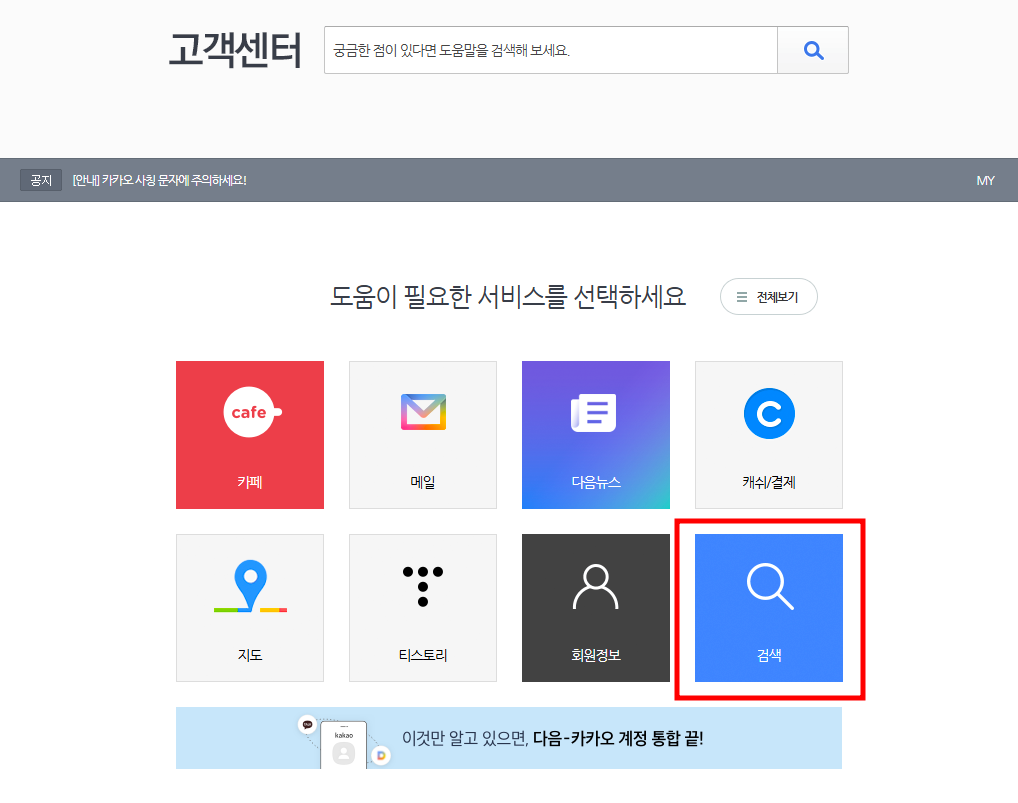 다음으로 진행한 카카오톡 고객센터 상담원 문의를 진행했습니다.